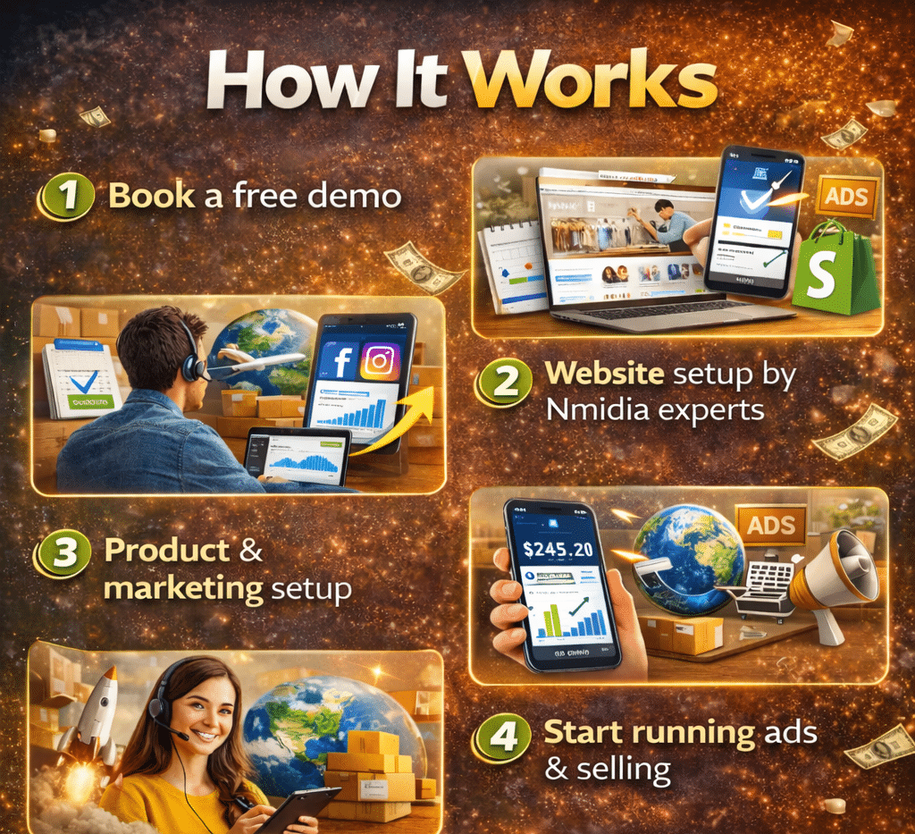 Nmidia helps you start and scale a high-converting dropshipping business with complete end-to-end support.